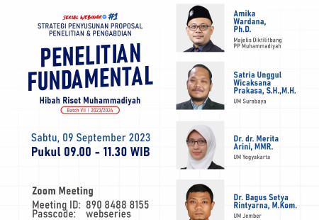 Read MoreSerial Webinar #1 Strategi Penyusunan Proposal Penelitian & Pengabdian "Penelitian Fundamental" Sabtu, 9 September 2023 Pukul 09.00 - ...